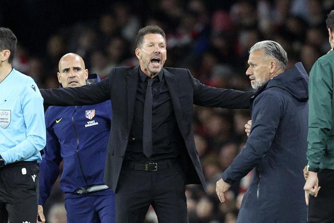 比赛上半场,马竞还能在客场与阿森纳互有攻守,并且力保球门不失。到了下半场,马竞甚至有机会依靠阿尔瓦雷斯的远射险些破门。然而就在阿森纳第57分钟,利用定位球机会率先由加布里埃尔打破僵局后,西蒙尼便坐不住了。